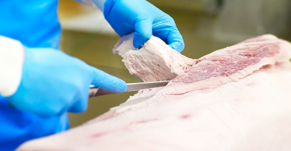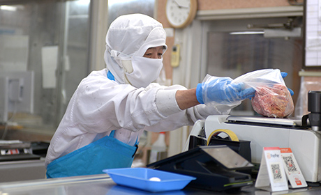 弊社が”食肉衛生のスペシャリスト”として『安全』『品質』『鮮度』を追求、厳選した素材を商品化する一貫した生産体制、徹底した衛生管理と品質管理のもと、安全・安心な食肉検品・加工を遂行しております。厳選した素材とは、当社が指定した産地と工場で処理された安心・安全で新鮮な食肉のことです。それを更に丁寧な検品・加工を行い、お得意様の工場へお届けしております。